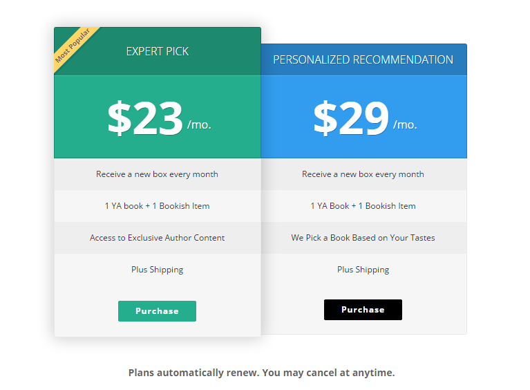 I just ordered my next month's box and I'm super excited for it to come. So although this isn't really a review, it's more like an announcement that I'll be ordering these for the next few months and to show you guys some of this box love! And of course there are many options that contain only the most popular books of that month!